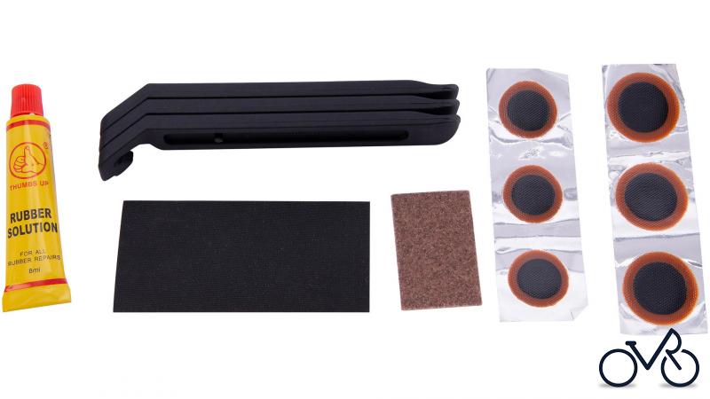 CONTEC Flickzeug "Patch.it" 6 x Flicken, Reparaturplatte, Vulkanisierungsflüssigkeit, Sandpapier, 3 x Reifenheber