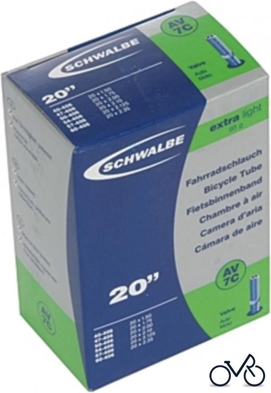 SCHWALBE Schlauch Nr.7C EXTRALIGHT 20" 40-406 20 x 1.50 47-406 20 x 1.75 50-406 20 x 2.00 54-406 20 x 2.10 57-406 20 x 2.125 60-406 20 x 2.35 Gewicht 95 g Ausführung: Schraderventil (AV)