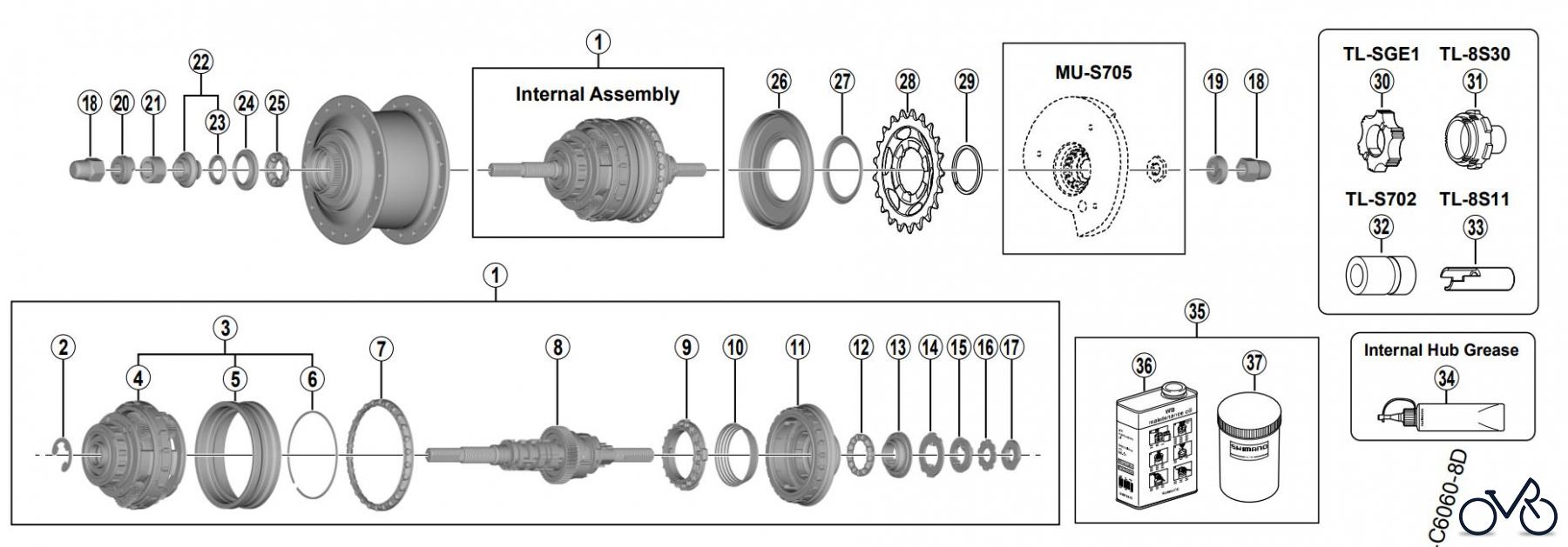 Shimano SG-C6061-8D NEXUS 8-Gang Nabenschaltung Ersatzteile