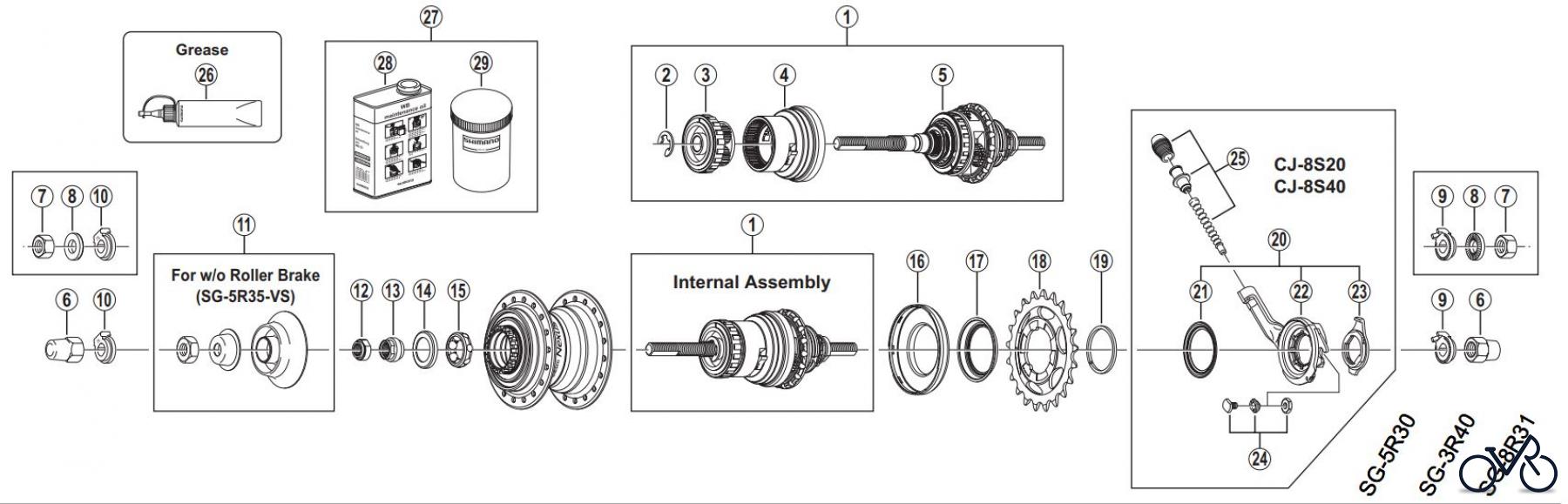 Hier finden Sie die Ersatzteilzeichnung für Shimano SG Getriebenabe /Nabenschaltung SG-5R35 (-3348) NEXUS 5-Gang Nabenschaltung. Wählen Sie das benötigte Ersatzteil aus der Ersatzteilliste Ihres Shimano Gerätes aus und bestellen Sie einfach online. Viele Shimano Ersatzteile halten wir ständig in unserem Lager für Sie bereit.