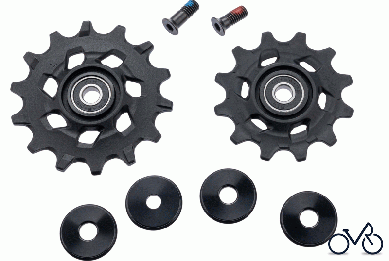 REAR DERAILLEUR PULLEY KIT APEX XPLR MECH (INCLUDES 12T STEEL BEARING UPPER AND 14T LOWER STEEL BEARING PULLEY, 12.5MM AND 14MM BLACK PULLEY BOLTS)