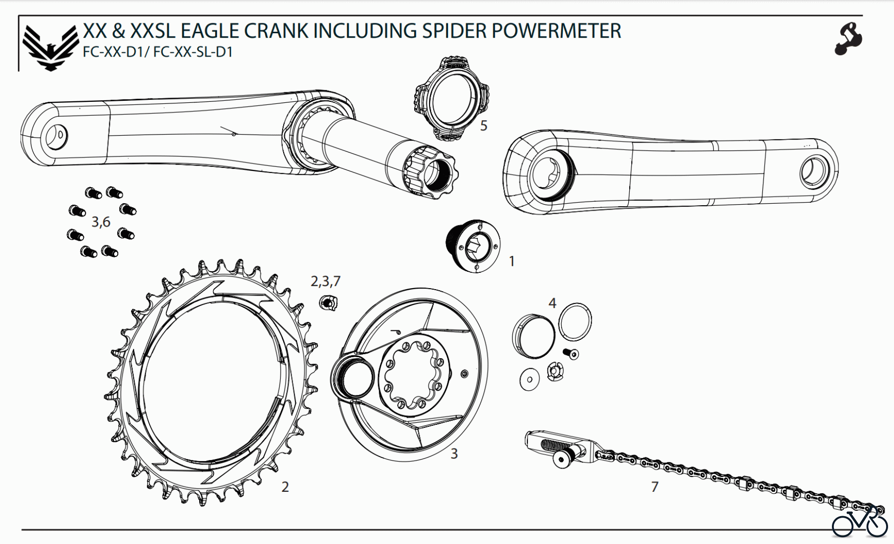 Häufig benötigte Sram XX & XXSL EAGLE CRANK INCLUDING SPIDER POWERMETER Ersatzteile