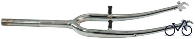 POINT MTB-Gabel 26" Verchromt , CrMo, geschmiedete Ausfallenden, mit Anlötsockeln Ausführung: Schaft 225 mm, Außen-Ø 25,4 mm = 1" , Innen-Ø 22,2 mm, Gewinde 135 mm, mit 4 Ösen und 2 Lowriderösen