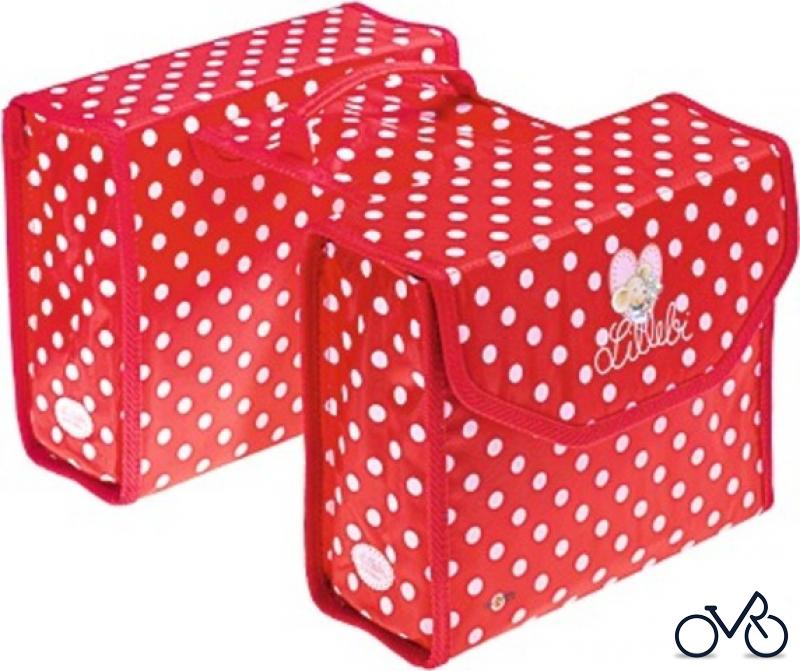 BIKE FASHION Kinder-Doppelpacktasche "Lillebi" Volumen: ca. 7 l, Maße: ca. B23 x H19 x T8 cm Mit Gepäckträgerlasche, verstärkte Seiten Ausführung: rot mit bunten Motiven