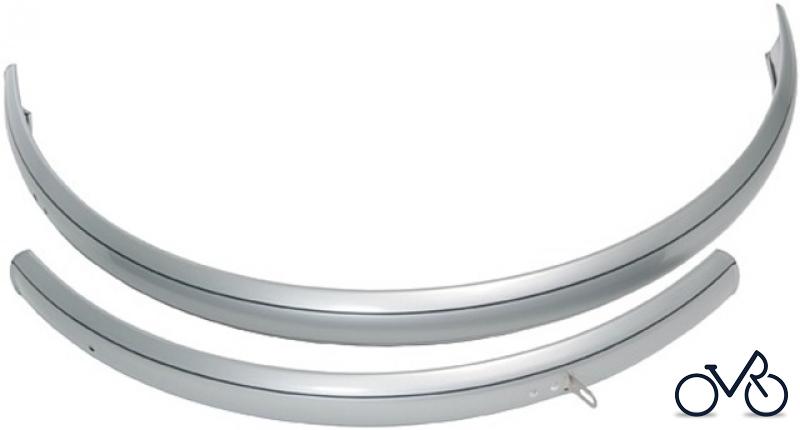 BÜCHEL Schutzblechgarnitur 55 mm breit, Metall, silber lackiert/schwarz liniert, Kastenform Verzinkt, einfach gelocht, kurzer Vorbau, ohne Streben und Zubehör Ausführung: 26" x 1,75