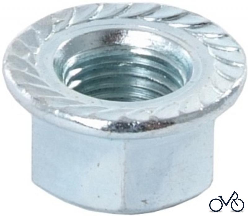 Achsmutter , verzinkt, Packung zu 10 Stück (= Mindestbestellmenge) Ausführung: SW 15 , M 10 x 1, mit angepresstem Flansch mit Sperrverzahnung