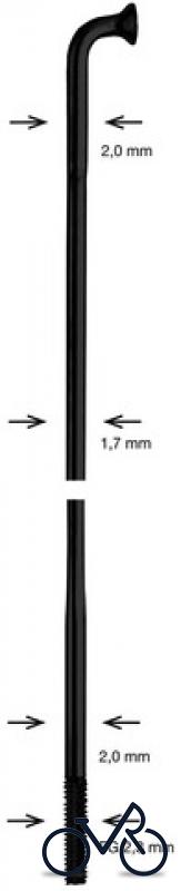 ALPINA Speiche DD schwarz, Ø 2,00/1,70/2,00 mm, Edelstahl Mit Messingnippel Verpackungseinheit: 100 Stück (Mindestbestellmenge) Preis per 100 Stück Ausführung: 248 mm lang