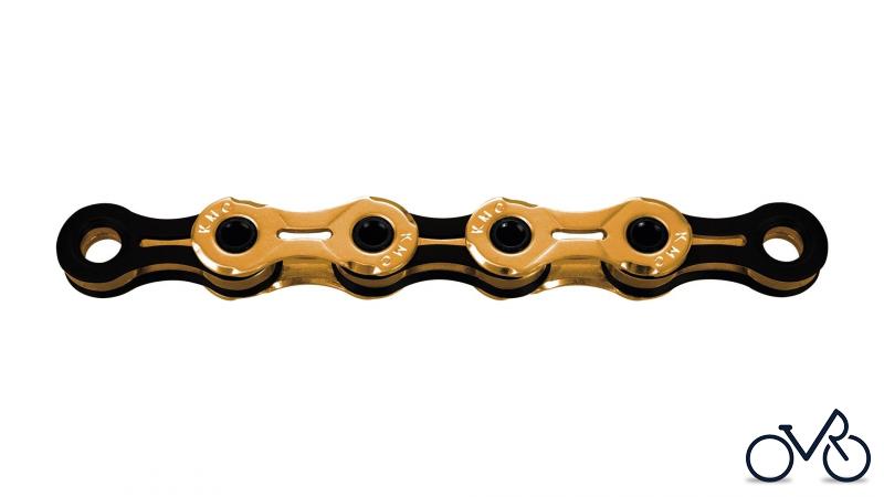 KMC Kette "X11SL" 11-fach, 1/2" x 11/128", 118 Glieder SB-verpackt , hohe Langlebigkeit durch KMC Titan-Nitrid-Beschichtung, für Straße, MTB, Gravel und Quer, nicht laufrichtungsgebunden, super leicht durch Hohlbolzen und gewichtsreduzierte Innen- und Außenlaschen, mit X-Bridge für verbesserte Schaltvorgänge, Finish: Ti-N gold/schwarz, Ti-N gold oder nickelbeschichtet, MissingLink "11R Ti-N" gold oder "11R EPT" silber, 242 g
