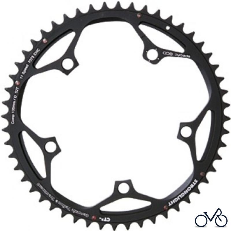 STRONGLIGHT Kettenblatt "CT2" 5-Arm, 135 mm Lochkreis, SB-verpackt, schwarz Mit Keramik-Teflon-Beschichtung, passend für Campagnolo Ultra Torque Super Record-Record-Chorus-Athena 11-fach. Ausführung: 52 Z., außen
