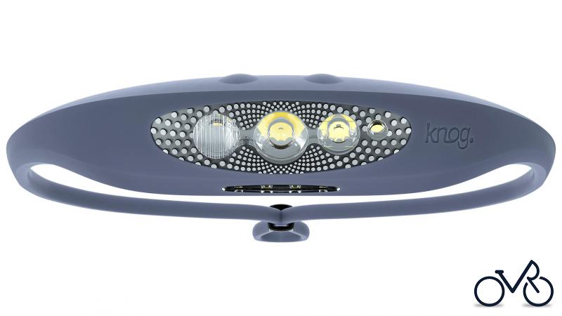 KNOG Stirnleuchte "Bilby" Verstellbar (47-64 cm Umfang), 4 LEDs, 5 Leuchtmodi, 400 Lumen, Farbtemperatur 3500 k (Lese-LEDs) bis 5700 k (Spot-LED), aus angenehm zu tragenden Silikon, wasserdicht (IP67), Laufzeit min. 5 Stunden (Boost Modus für 400 Lumen jeweils 10 Minuten pro Aktivierung), per USB aufladbarer LiPo Akku, Gewicht: 90 g