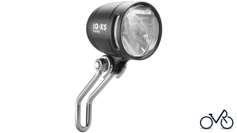 BUSCH & MÜLLER LED-Scheinwerfer "Lumotec IQ-XS E" 80 Lux, Tagfahrlicht, mit Nahfeldausleuchtung, mit deutschem Prüfzeichen SB-verpackt, 6-42 V DC , Großflächenlichtfeld, zum Anschluss an das Gleichstromsystem des E-Rades, ohne Schalter (Bedienung nur über Bordsystem), mit IQ2-Lichttechnik, Aluminiumgehäuse