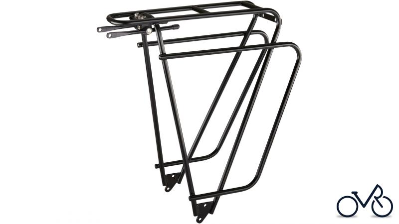 TUBUS H.R.-Gepäckträger "Logo Classic" 25CrMo4, mit Taschenstoppern, V-Streben, Hinterbaustrebenbefestigung Separate Ösen für Schutzblechstreben, durch tiefere Anbringung der Packtaschenstrebe bessere Schwerpunktlage des Gepäcks, Gewicht inkl. Anbauteile: ca. 800 g, schwarz, max. Zuladung 26 kg , nicht für Kindersitze geeignet.