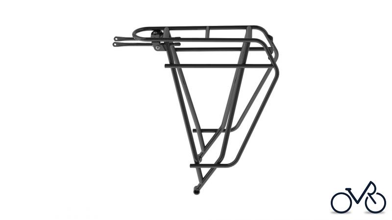 TUBUS H.R.-Gepäckträger "Grand Tour" 26"-28", 25CrMo4, V-Streben, Hinterbaustrebenbefestigung Gepäckträgerfuß als Rohrkonstruktion für extreme Steifigkeit, zwei Ladeebenen mit Taschenstoppern, Möglichkeit zur Aufnahme eines Spanngurtes sowohl quer als auch längs, mit Rücklichthalterung, interne Lichtkabelverlegung für das Rücklichtkabel, Gewicht: ca. 760 g, max. Zuladung 26 kg , passend für alle gängigen Packtaschen, nicht für Kindersitze geeignet.