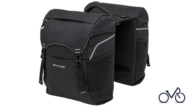 NEW LOOXS Doppeltasche "Sports Double" Volumen: 32 l (2x 15 l), Maße (L x B x H): 29 x 16 x 39 cm, Polyester, schwarz Wasserdicht, Hauptfach und mehrere kleinere Fächer, Reflexapplikationen