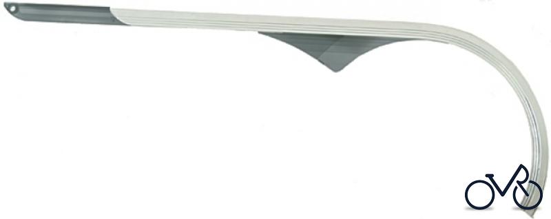 HORN Alu-Kunststoff-Kettenschützer "Catena A08" SB-verpackt, 1-flügelig, bis 48 Z., Ø 24,8 cm Passend für 1- bis 3 fach , längenverstellbar 320-420 mm (von Tretlagermitte), mit Blende im Umwerferbereich (transparent smoke), ohne Zubehör Ausführung: silber poliert