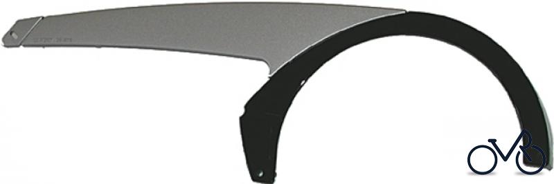 HORN Kunststoff-Kettenschützer "Catena 4810" 1-flügelig, passend für 2- und 3-fach mit KS-Ring bis 48 Z., Ø 24,4 cm Längenverstellbar von 380-435 mm (von Tretlagermitte), ohne Zubehör Ausführung: Scheibe: schwarz , Flügel mit Schieber: silber