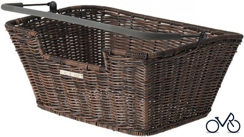 BASIL H.R. Fahrradkorb "Capri Flex" Maße: 40 x 31 x 18 cm, Rattan Look Korb aus Kunststoff-Rattan, Befestigung mittels verstellbarer Haken unter dem Korb, wetterfest mit Soft Grip Tragegriff, Aussparung für Federklappe Ausführung: braun