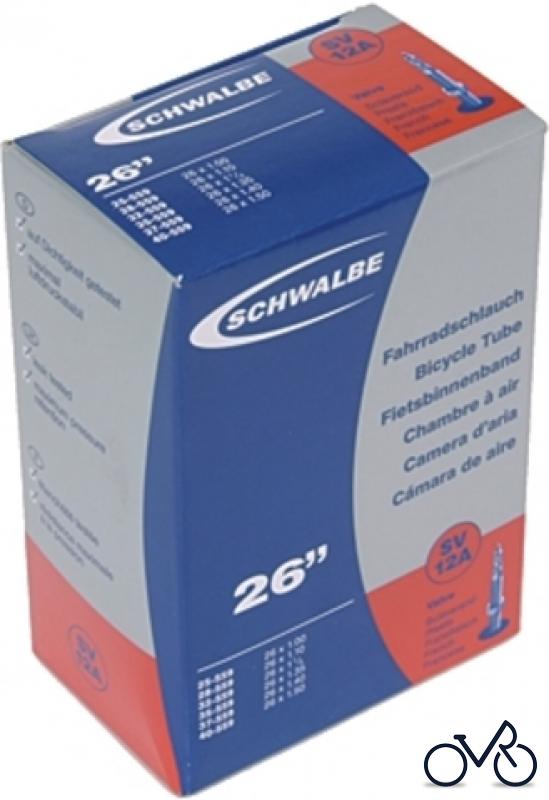 SCHWALBE Schlauch Nr.12 A 26" 25-559 26x1.00 28-559 26x1.00 32-559 26x1 1/4 35-559 26x1.35 37-559 26x1.40 40-559 26x1.50 Gewicht: 120 g