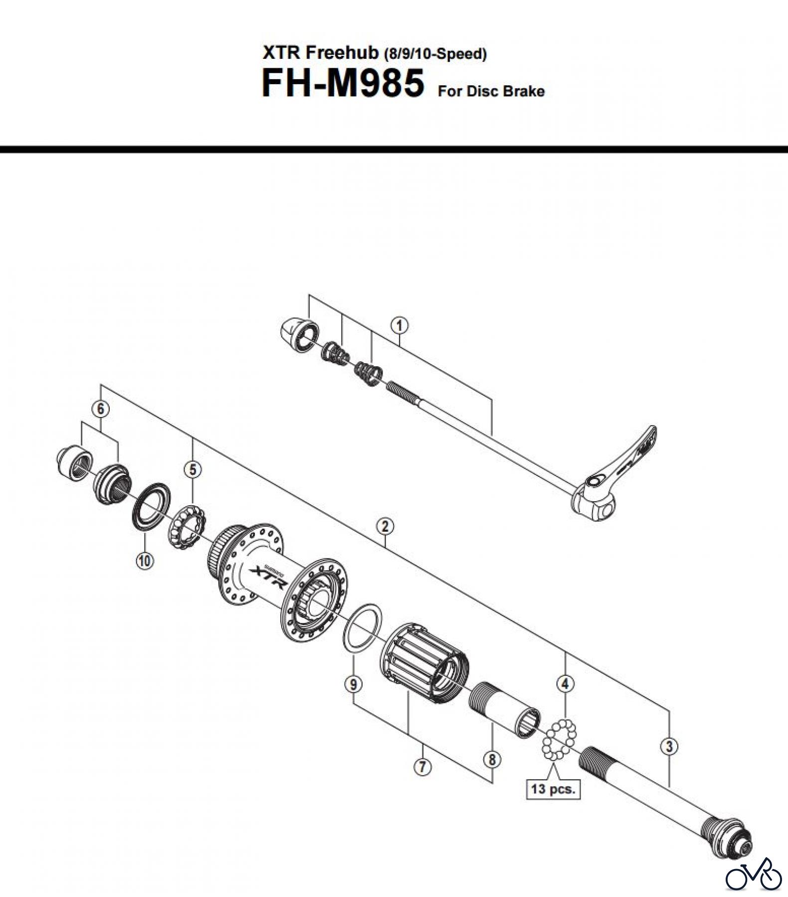 Hier finden Sie die Ersatzteilzeichnung für Shimano FH Free Hub - Freilaufnabe FH-M985 -3012_v1 XTR Freehub (8/9/10-Speed. Wählen Sie das benötigte Fahrrad-Ersatzteil aus der Ersatzteilliste Ihres Shimano Fahrrads aus und bestellen Sie einfach online. Viele Shimano Ersatzteile halten wir ständig in unserem Lager für Sie bereit.