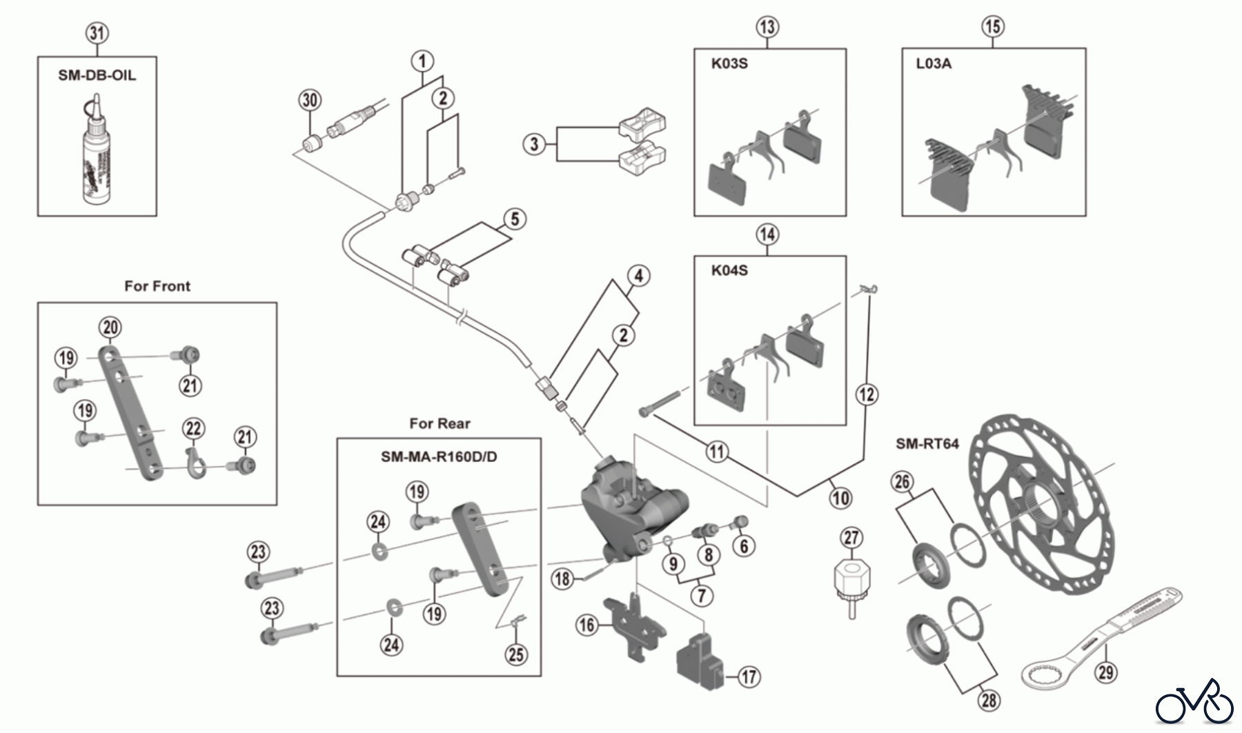 Häufig benötigte Shimano BR-RX400 GRX Disc Brake Ersatzteile